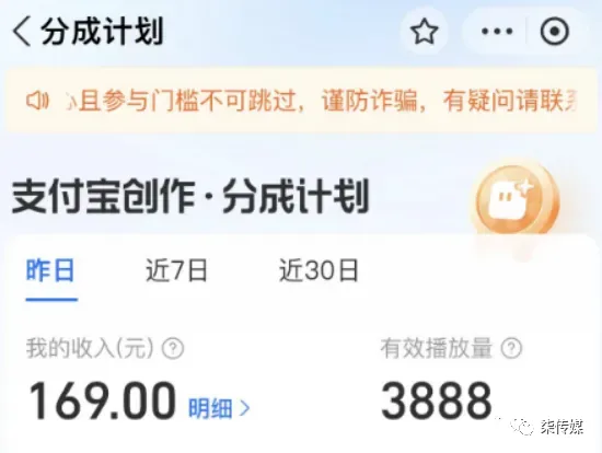 短剧高回报比板块一:支付宝分成计划