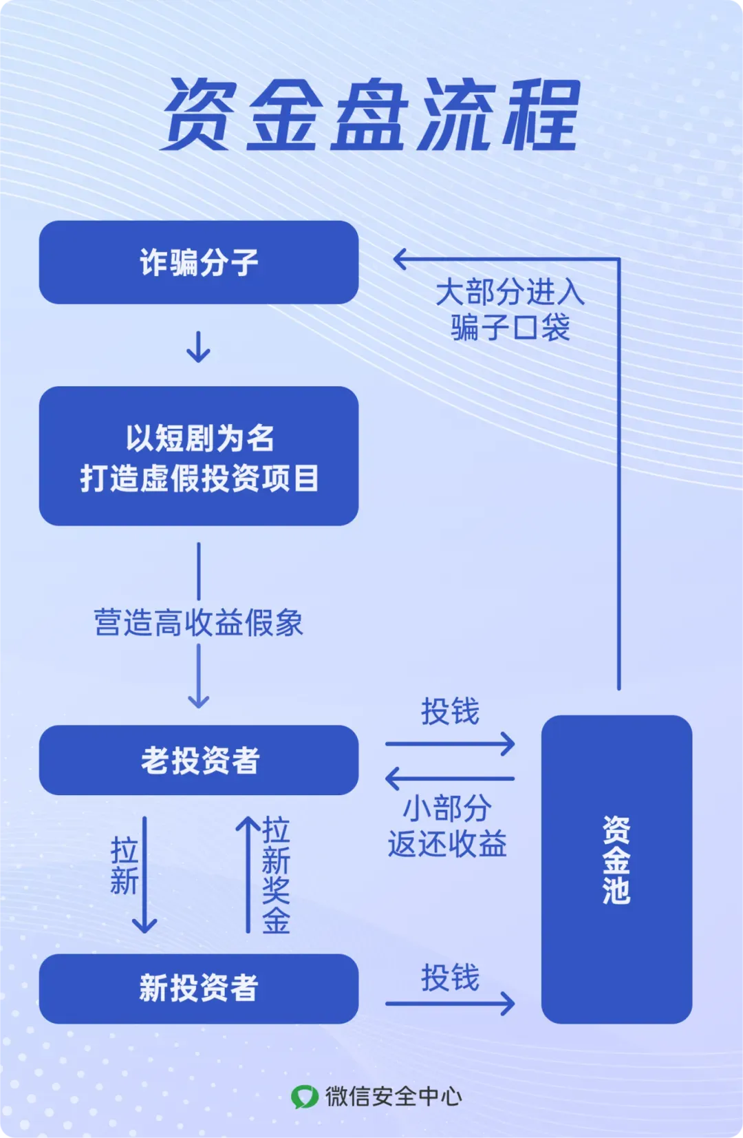 实际上,这就是资金盘诈骗,所谓的投资收益并非来自短剧项目盈利,而是利用后期投资者投入的钱支付给前面的老投资者,一旦后面没有新人投钱进来,那么老投资者的收益自然无法拿到。