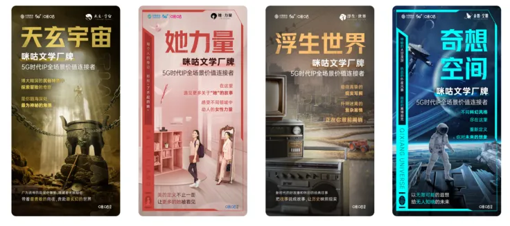 同时,咪咕文学坚持以“网文厂牌+剧本+X”的模式进行开发孵化,“她力量”“天玄宇宙”“奇想空间”“浮生世界”四大厂牌储备优质内容,助力IP全版权运营孵化。