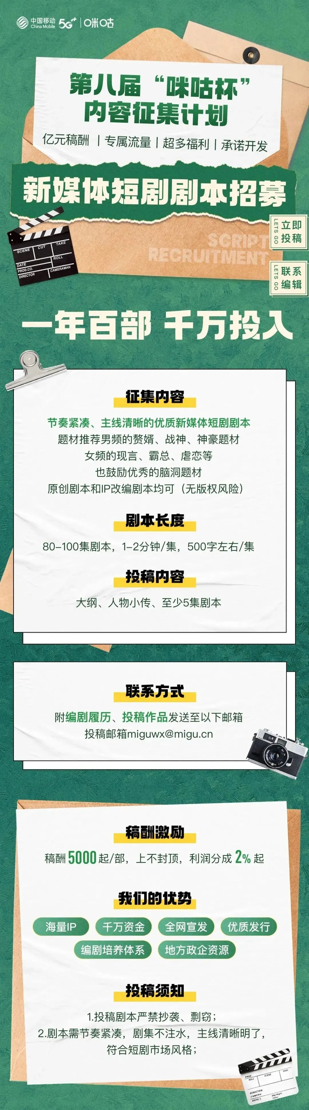 新媒体短剧剧本5000元一部起,上不封顶,还有专属流量扶持!