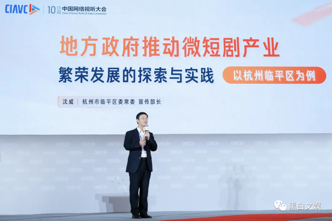 除了平台赋能,微短剧作为新兴的内容产业,其发展离不开主管部门与地方政府的支持。杭州市临平区委常委、宣传部长沈威表示:“网络视听特别是微短剧已经成为整个互联网内容建设的一个主渠道。在此基础上,临平区也将健全体制机制,打造一个最懂微短剧的政府。要将微短剧产业建设与地方发展深度融合协同增效。”谈及推动微短剧产业繁荣发展的思路时,沈威将其概括为“写、拍、播、评、投五位一体”五架马车,地方政府要在基础设施建设、企业扶持、资源对接等方面积极发挥推动引领作用。