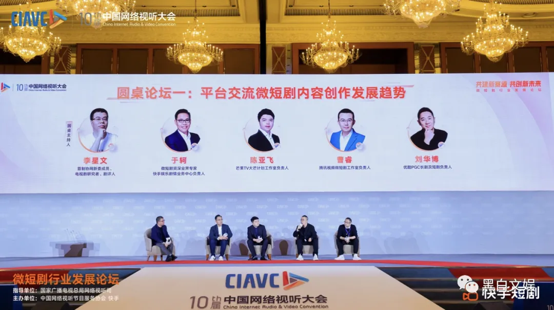 平台作为连接内容创作者和用户的桥梁,更能敏锐地捕捉到市场以及用户需求的变化。在圆桌论坛环节,微短剧资深业界专家、快手娱乐剧情业务中心负责人于轲与芒果TV大芒计划工作室负责人陈亚飞,腾讯视频微短剧工作室负责人曹睿,优酷PGC长剧及短剧负责人刘华博从平台方的视角出发,围绕微短剧创作以及用户消费喜好层面的新趋势展开讨论,为微短剧的创作者以及准备入局的从业者带来新启发。