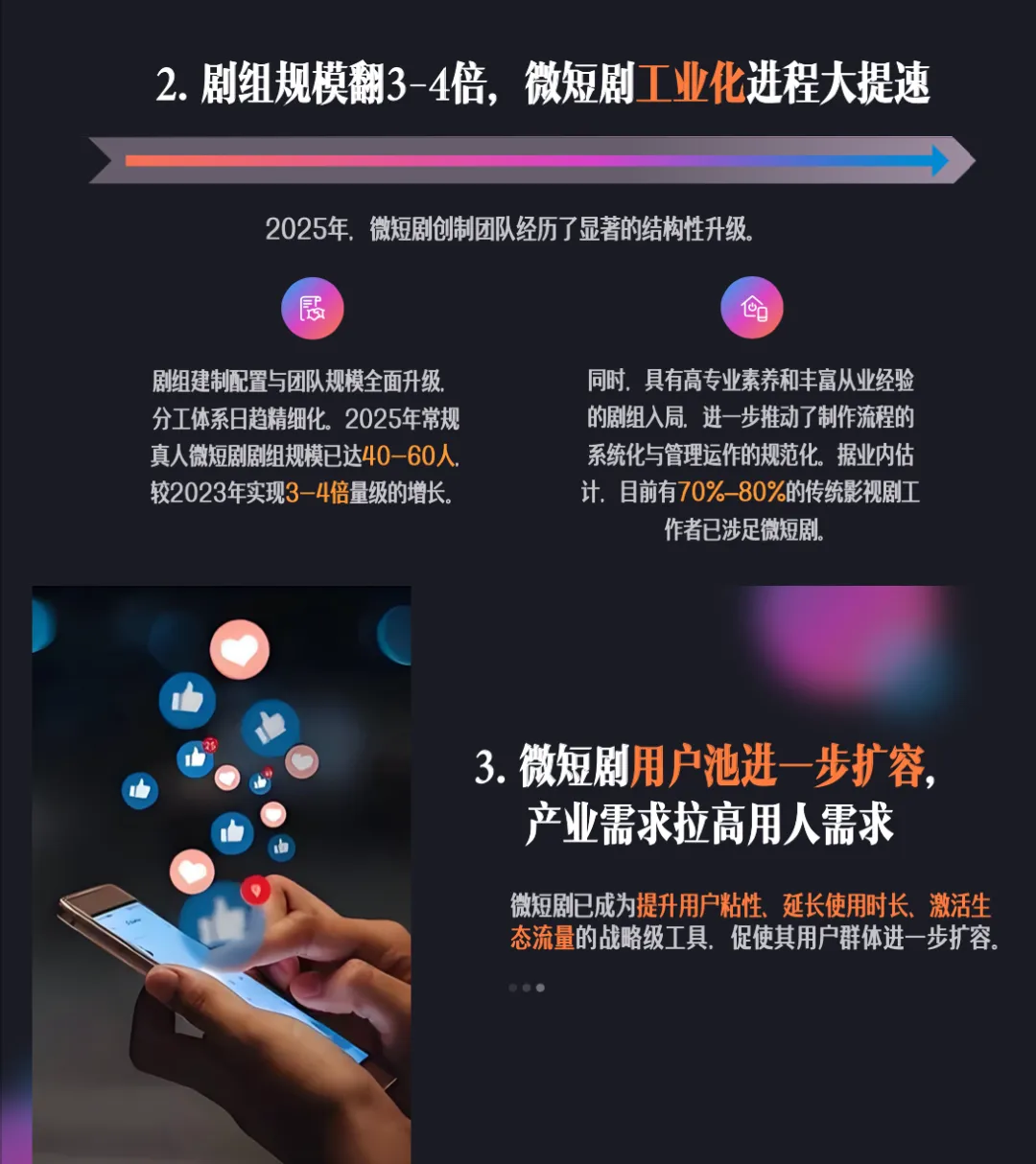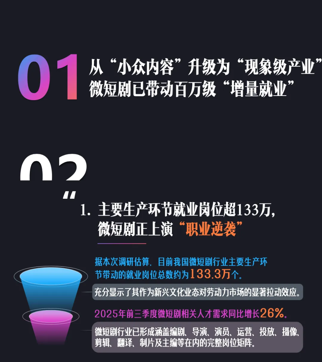 报告深度洞察#微短剧 创作生态新趋势,从就业拉动、人才重构、技术革新、内容升级等维度全方位呈现微短剧从“小众内容”向“现象级产业”跃迁的行业图景。