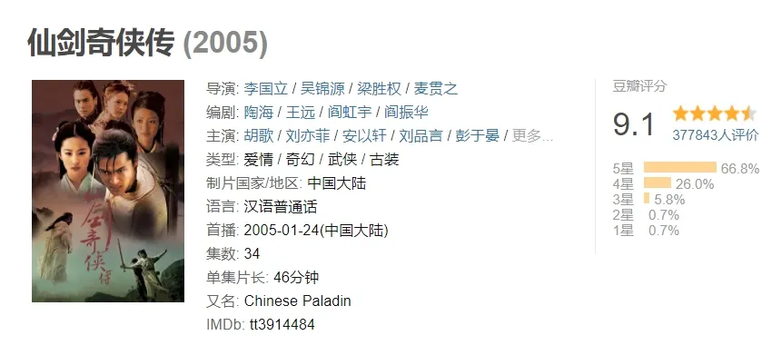 2005年首播的《仙剑奇侠传》打下了仙侠题材的江山,豆瓣评分高达9.1,四年后的《仙剑奇侠传三》豆瓣评分保持9.0,近二十年后的《苍兰诀》捧出新顶流,再次验证了题材类型的可行性。