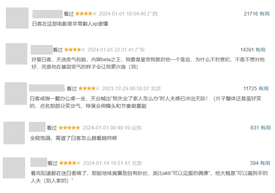 去年年底,一部国产喜剧片《年会不能停》以黑马姿态杀出重围,豆瓣评分维持在8.1。其中,白客饰演的“窝囊”打工人意外收获了一批女粉的怜爱,“受气包脸”和“人夫感”是高频率出现的好感标签。