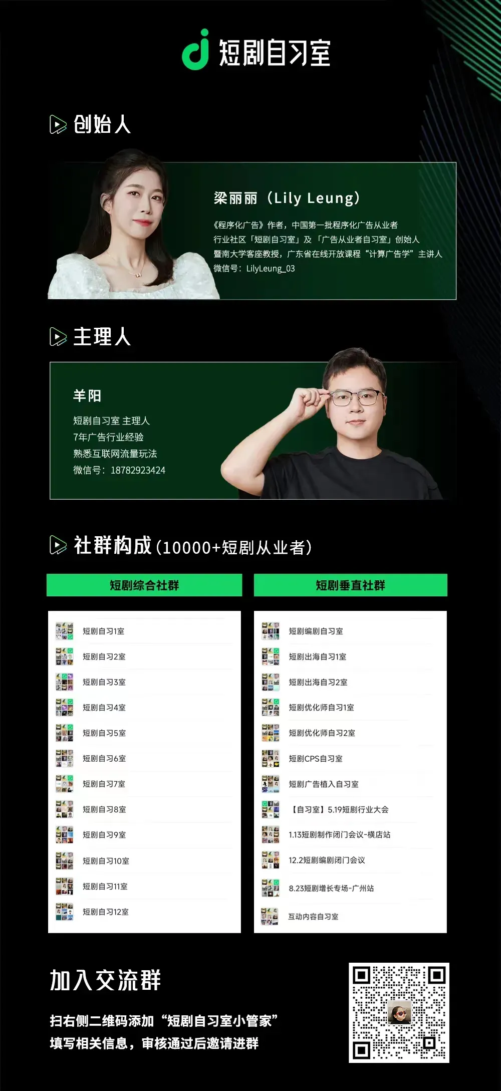 PS:如需加入短剧微信群,请添加小管家微信(LilyLeung_333)填写信息,审核后进群。