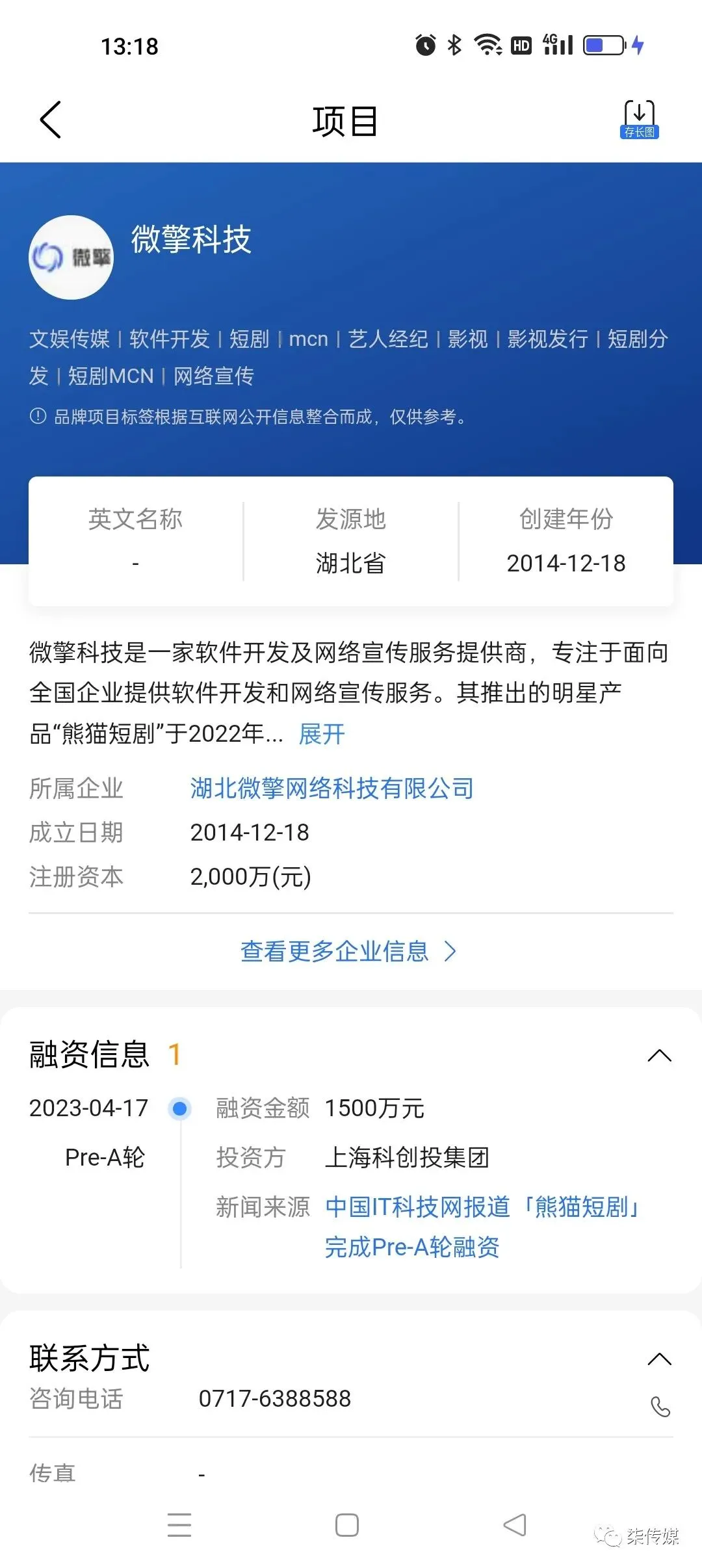 在我去厦门的5月8号那天,熊猫短剧的母公司湖北微擎科技被上海科创基金注资1500万。微擎科技是短剧MCN机构,主要业务是短剧切片分发。和我会议上分享的麻雀平台类似。熊猫短剧也参加了我在杭州举办的会议。