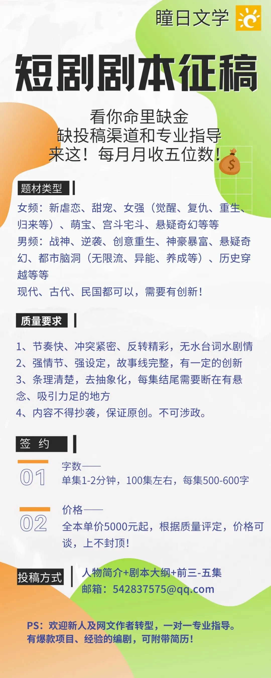 网文作者新出路:我靠写短剧剧本月入三万!(附编辑投稿邮箱)