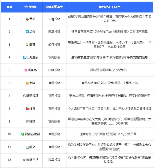 本文将为你一次性盘点12家主流大厂的短剧剧本官方投稿通道,涵盖官网、邮箱、表单等多种形式,助你精准投递,不错过每一个机会。