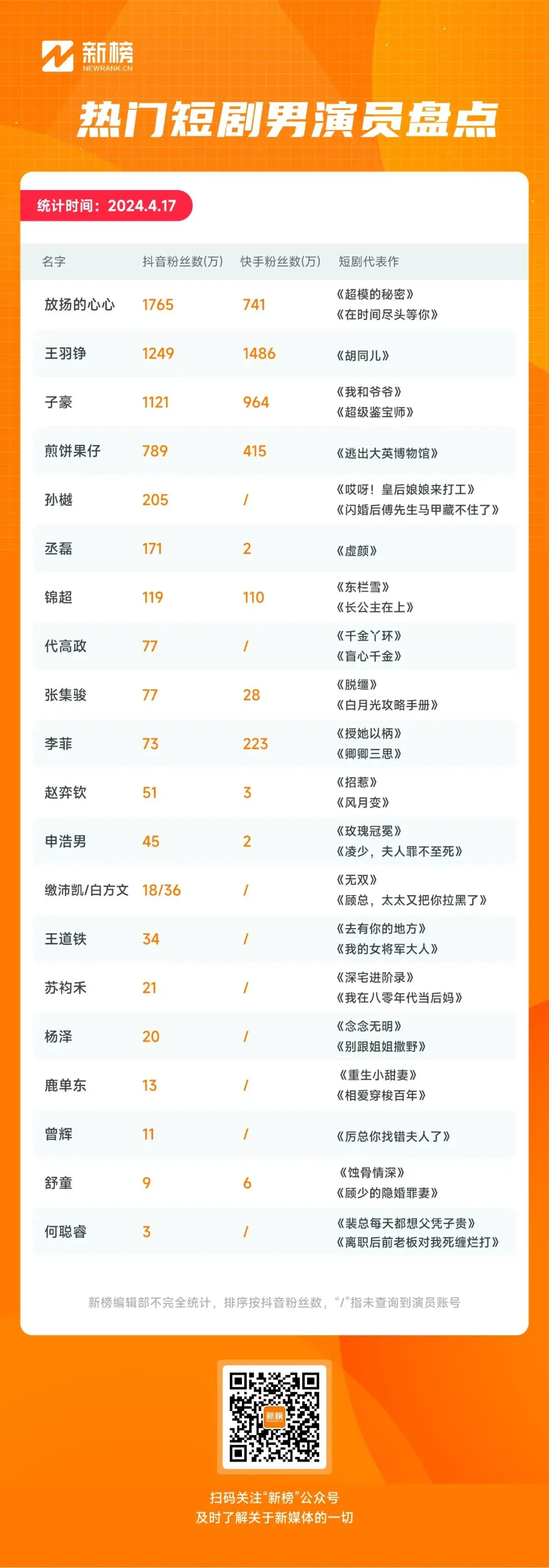 近日,新榜编辑部结合短剧演员的作品影响力和社交影响力,统计了部分热门短剧中的男女演员,尝试回答上述问题。