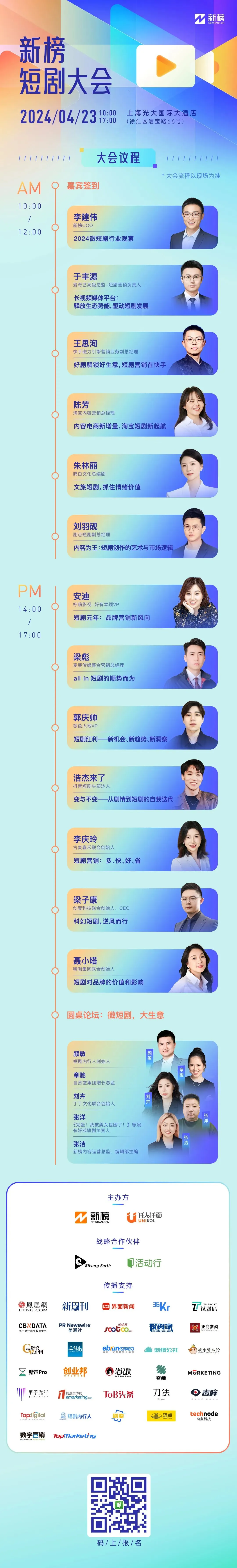 PS. 4月23日,「新榜短剧大会」将在上海光大国际大酒店举行,欢迎扫码报名,与短剧一线从业者线下碰面,共探短剧风口!
