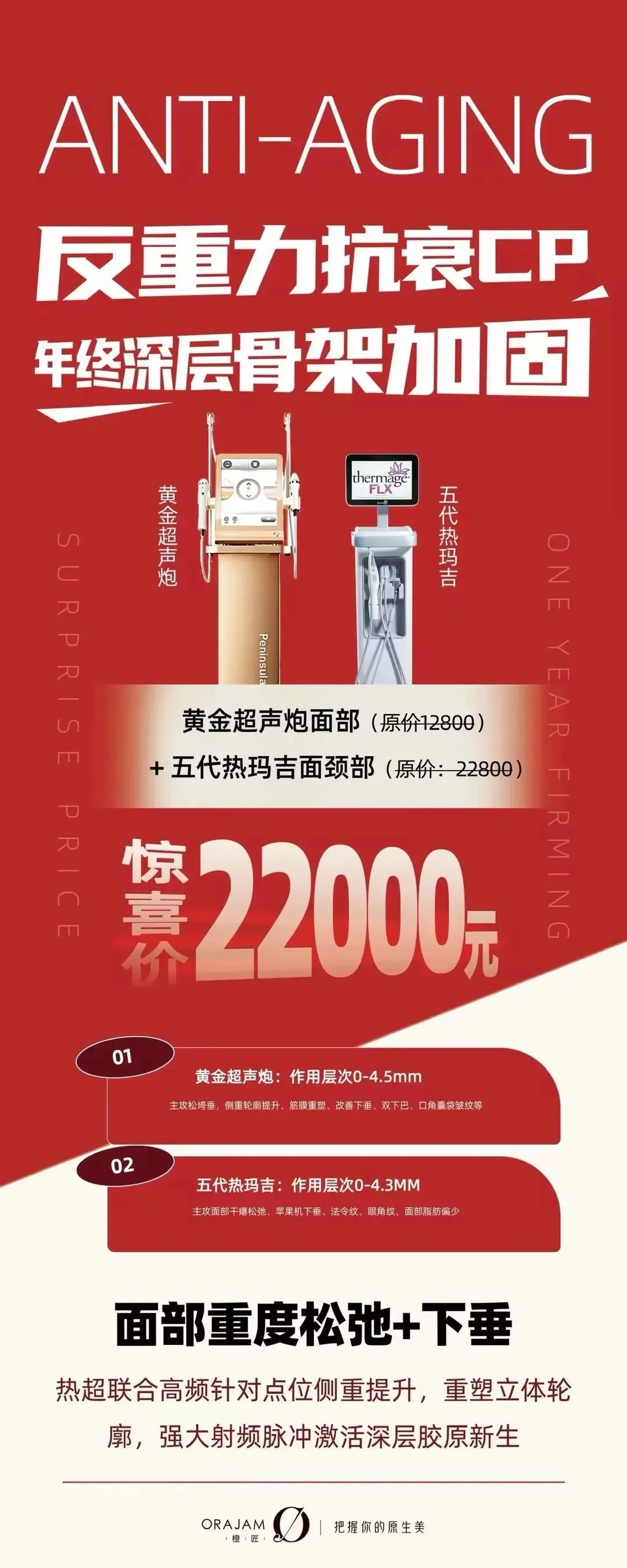 比如现在黄金超声炮原价12800+热玛吉五代原价22800,单做俩项目要35600的情况下,我肯定要考虑一下,但是现在两个项目叠加只需要22000,省下的钱还能再打半年的水光,这羊毛不薅秃简直是亏麻了。