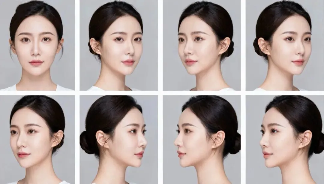 正面看五官比例、面部对称度、侧面看骨相轮廓、软组织厚度、45 度看法令纹深浅、下颌线衔接度...