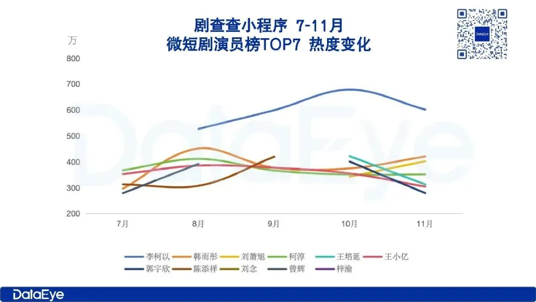 △剧查查小程序7-11月短剧演员热度TOP7,排名逐渐固化