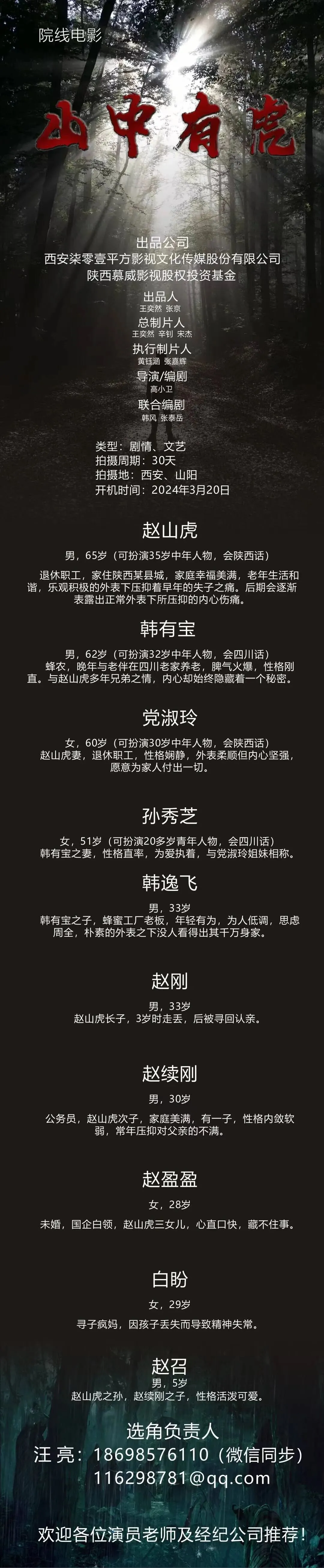 选角导演:郑长红15167917884(微信同步)