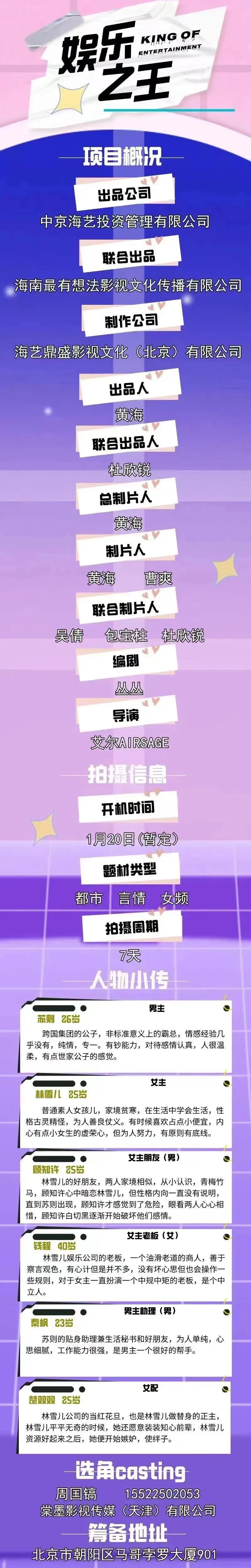 选角导演:李刚 17813366046(微信同步)