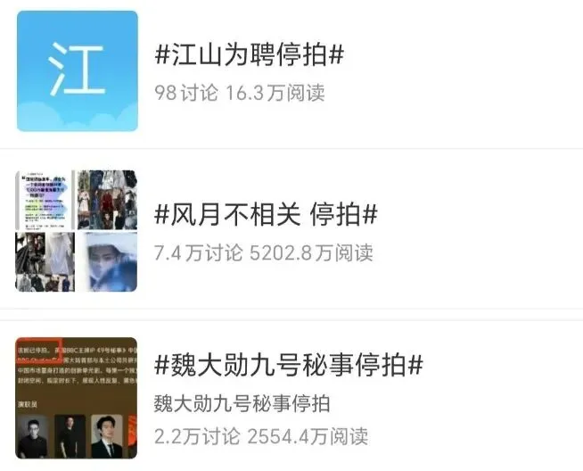 不仅如此,今年以来,频频传出长剧剧组停拍的消息,比如吴谨言与陈哲远主演的《江山为聘》自开机以来屡屡被传停拍,邓为、李宛妲主演的《风月不相关》和魏大勋主演的《九号秘事之黑帷背后》等等剧组,均传出过停拍的消息。