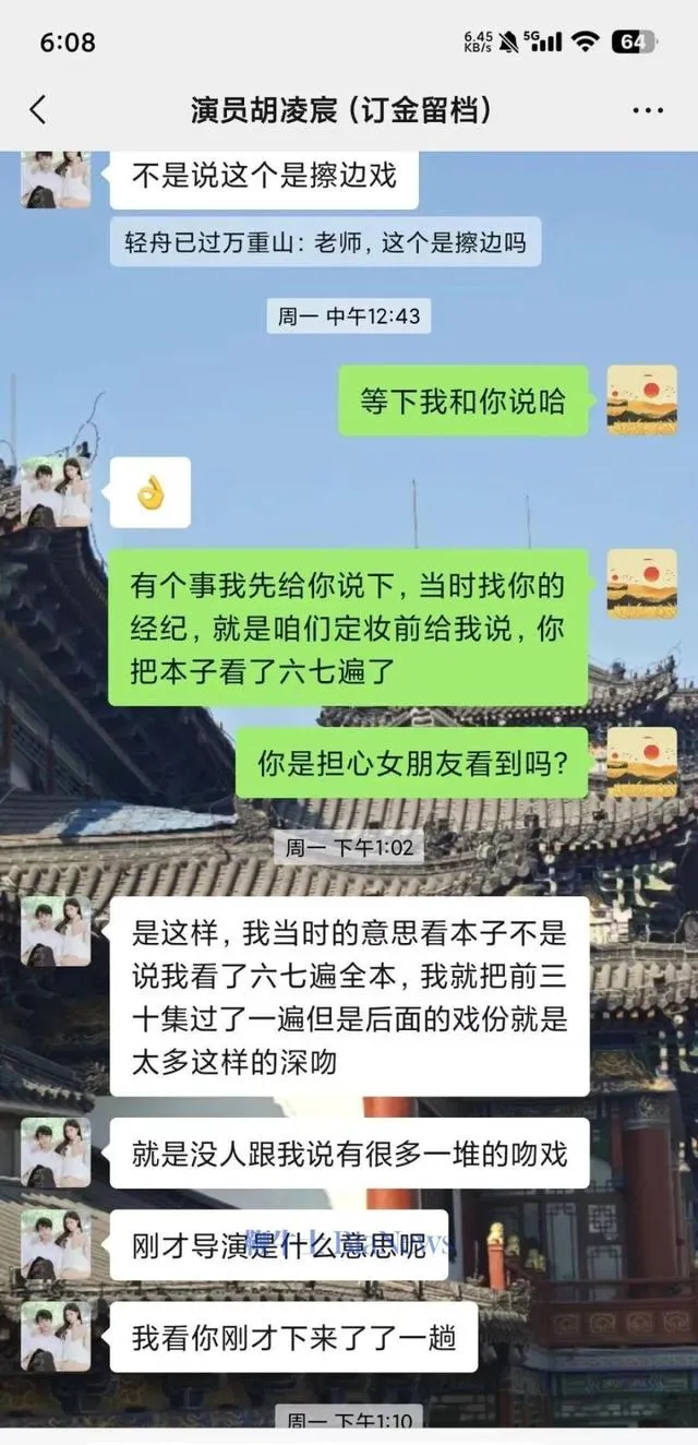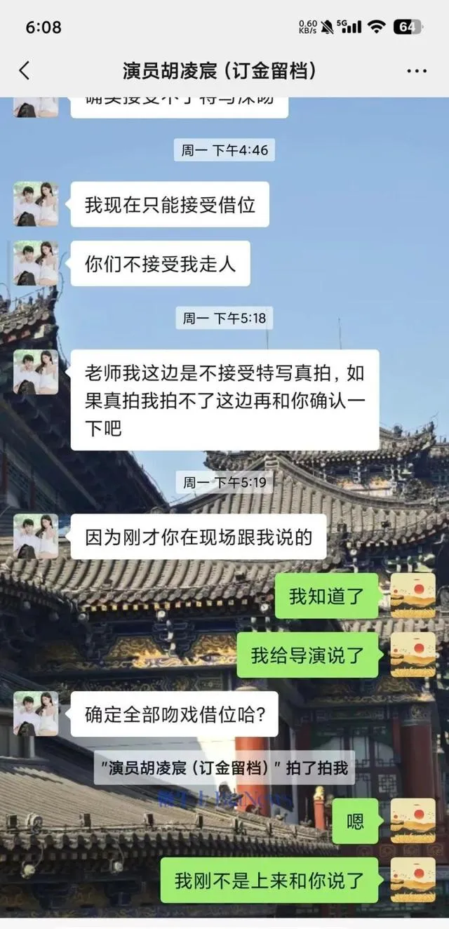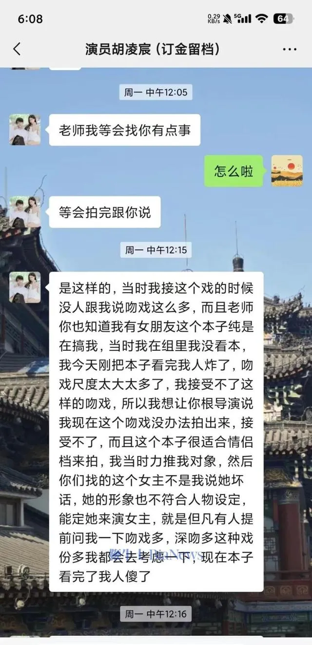 胡凌宸:“我真的没想到这么多吻戏 要不都借位吧 你们不同意我就走人”
