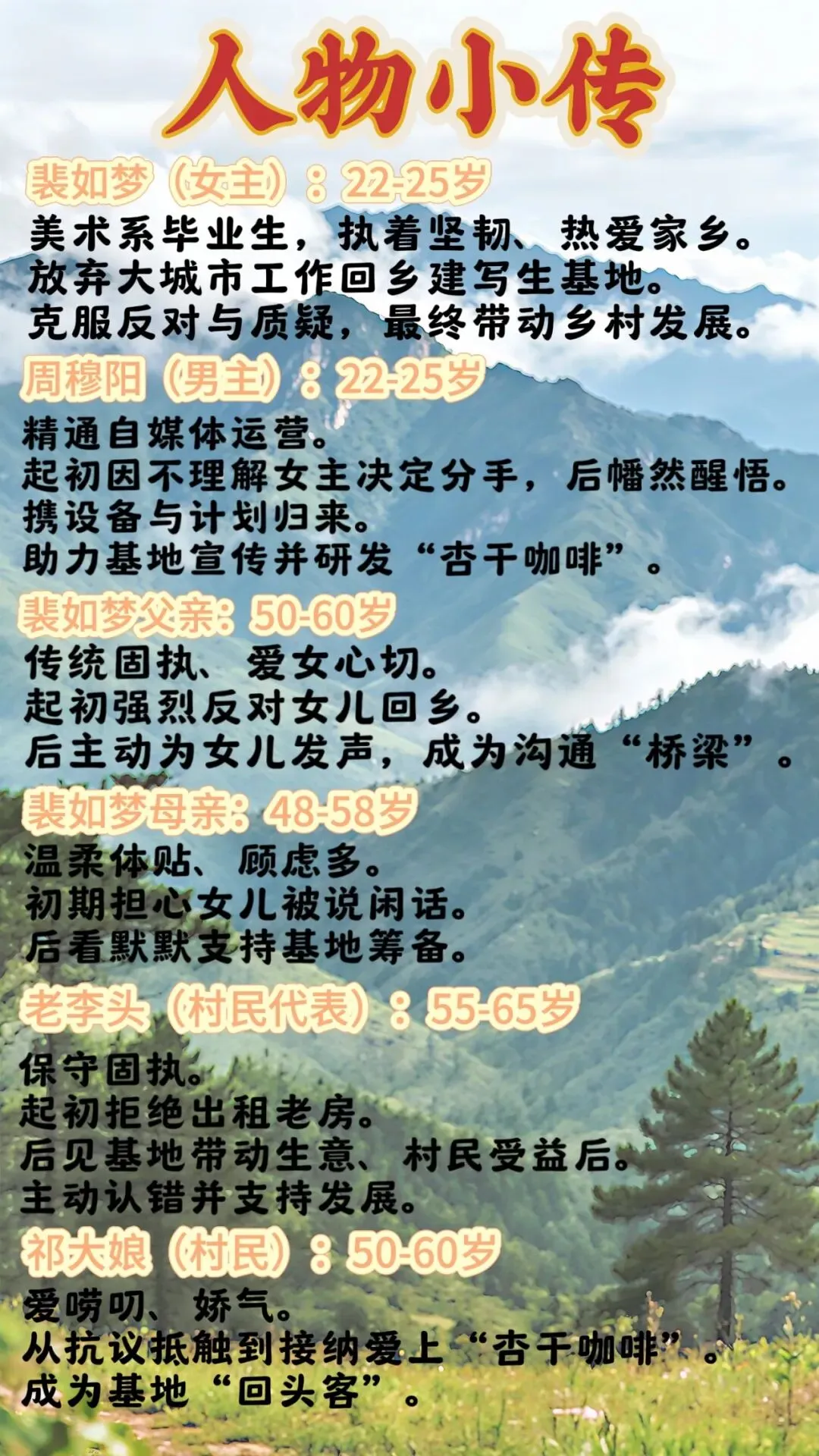 2.拍摄场景为乡村实景(山水、老房子、写生基地),沉浸式还原剧情,降低演员“入戏”难度。