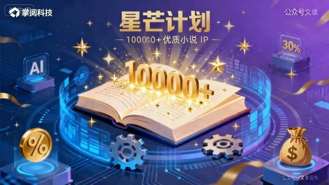 掌阅科技也紧跟步伐,发布“星芒计划”。一口气开放10000+优质小说IP,为创作者提供充足的内容素材。同时,计划还配备了AI编导陪跑加持,降低创作门槛,并推出“保底+最高30%利润分成”的收益共享模式,让创作者更有动力。