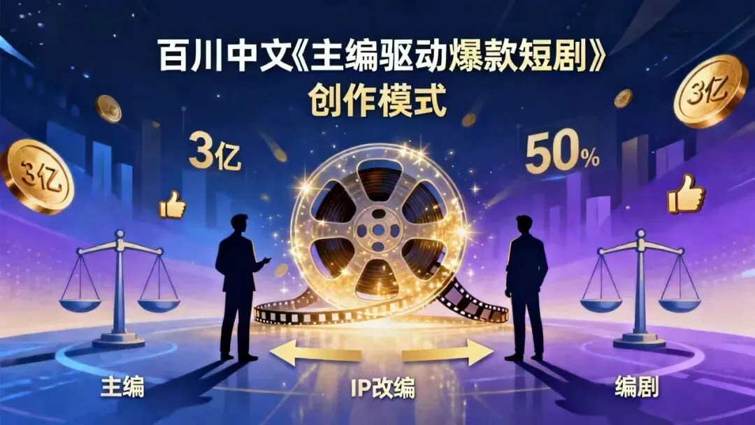 值得关注的是,百川中文也推出《主编驱动爆款短剧》创作模式,采用“主编+编剧”双轮驱动,原创与IP改编各占50%;制作上采用承制与自制结合的方式,宣发则与版权中心深度合作,目前其厂牌在红果平台的点赞量已突破3亿,成效显著。
