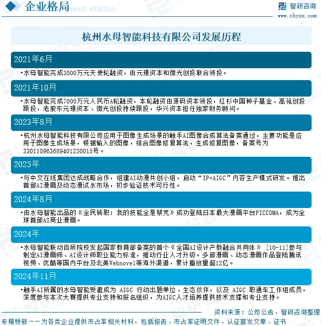 杭州水母智能科技有限公司成立于2020年11月,是一家专注于“AI+动漫”领域的高科技企业。国内首家自有技术产品驱动的AI+漫画及动漫短剧创作企业。致力于通过AIGC(人工智能生成内容)重构动漫创作生态,打造从IP开发、内容生产到全球化分发的全链路AI动漫解决方案。公司旗下核心产品“触手AI平台”可实现从文字到漫画的自动化生成,降低创作门槛与成本,已推出《我靠嘴贱登上修真巅峰》《全民转职:我的技能全是禁咒》等多部爆款AI漫画、动漫短剧,全网累计播放量突破12亿次,合作覆盖腾讯动漫、Bilibili漫画、日本Piccoma等全球头部漫画平台。公司还牵头推动AI动漫人才培养,与多所高校共建产教融合项目,并参与制定国家AI漫画、AI设计行业人才标准,成为“AIGC+文化出海”领域的领军企业。