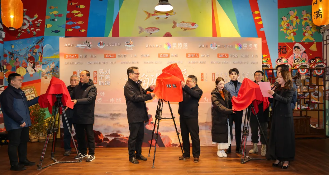 在金山嘴渔村“非遗+”市集现场,嘉宾及剧组主创人员共同为短剧揭幕,标志着这部备受期待的文旅短剧进入实拍阶段。