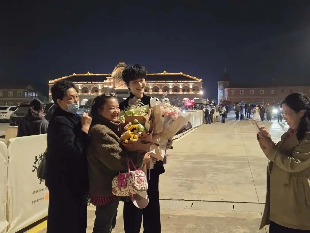 11月初横店短剧活动的现场有过这样一幕——四五位从外地赶来、看起来已经五十余岁的中年女性,围守在短剧演员离场的通道出口,她们手捧大束鲜花,身旁还放着装满应援物料的行李箱。