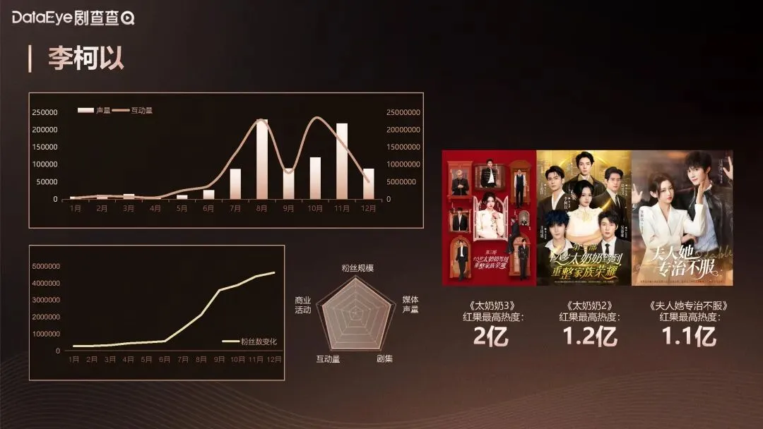 《太奶奶》系列和《夫人她专治不服》系列,让这个冷脸萌的小姑娘爆火出圈,2025年有6部播放破十亿的爆款短剧在手,长期占据演员榜单前列。