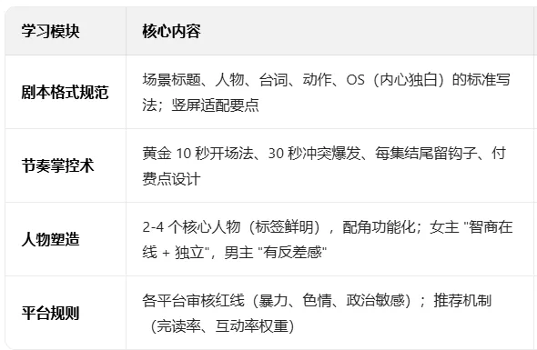 🔹 基础阶段(1-2 个月):掌握短剧底层逻辑