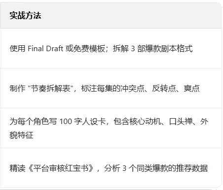 初期:仿写爆款核心片段(1-3 集),熟悉节奏和冲突设计