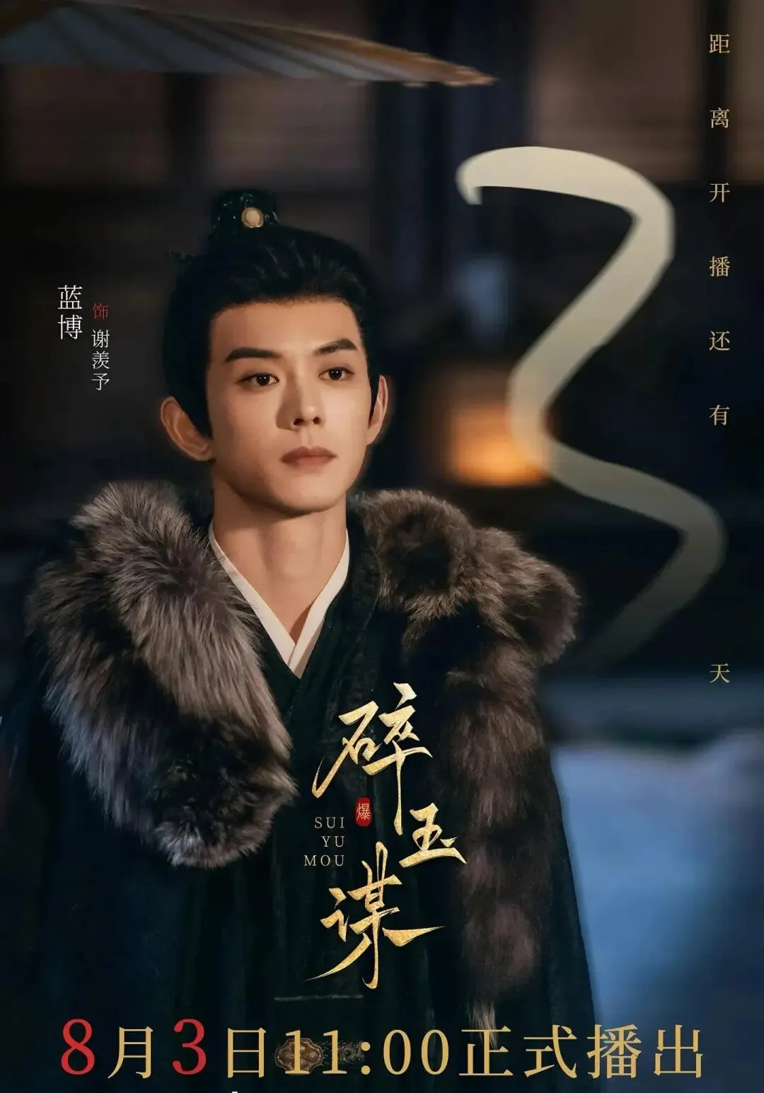 - 《碎玉谋》:蓝博饰演疯批权臣谢羡予,他对落魄孤女许婉若强取豪夺,却又在许婉若逃走后暗自神伤,蓝博将这个角色的狠厉与深情演绎得十分到位。