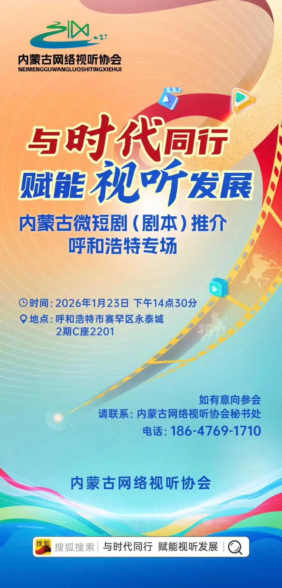 为推动内蒙古网络视听行业创新发展,助力微短剧产业提质升级,内蒙古网络视听协会将举办“与时代同行 赋能视听发展”内蒙古微短剧(剧本)推介呼和浩特专场活动。现诚邀各单位及影视创作领域从业者参会,共探行业发展新机遇。