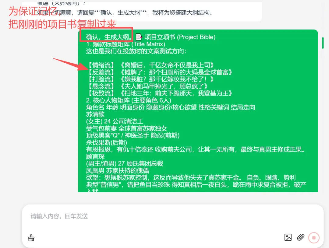确认项目书,生成故事大纲