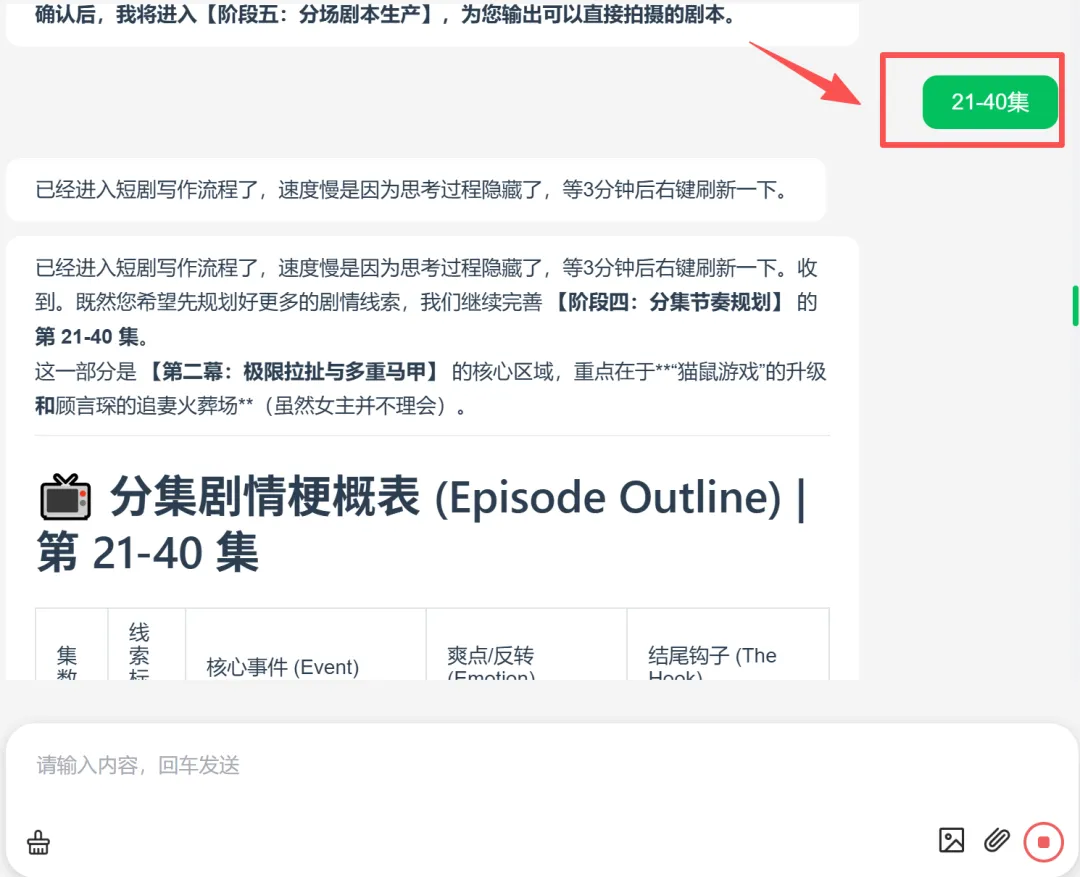 确认故事大纲,分批生成分集梗概