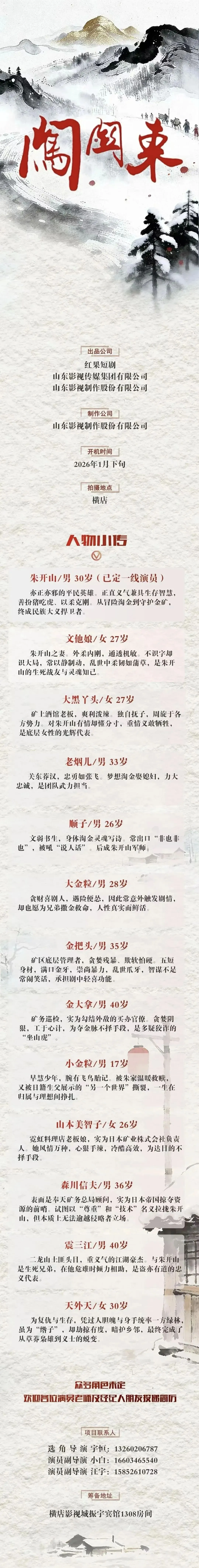 >【1月下旬 横店】短剧《闯关东》招募演员