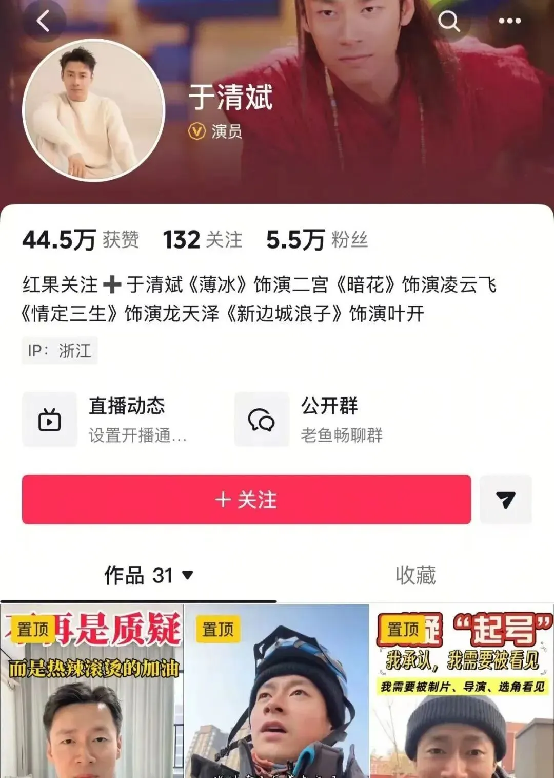 关于引流起号的质疑,于清斌回应称:“我很坦诚地说,我的确需要观众,但这个需要不是为了成为网红,我是为了可以正常的生活下去,可以继续拍戏,可以早点回归到之前的工作中。”