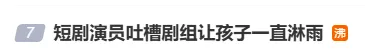 1月17日,有短剧演员吐槽某剧组夜里拍雨戏,一直让孩子淋洒水车制造的瓢泼大雨,引发热议。1月18日,相关词条冲上微博热搜。
