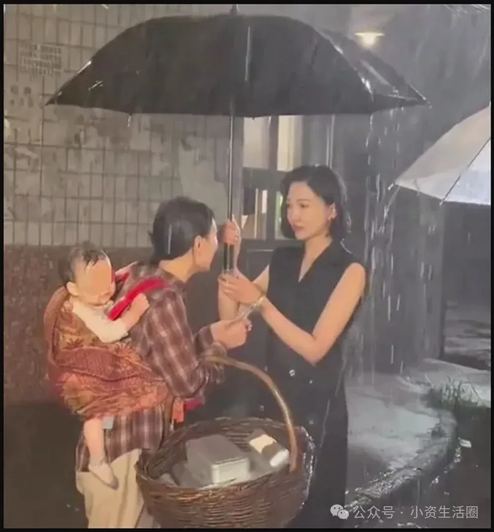 她透露因为要拍近景,她和对手女演员脸上不能有雨,所以伞不能放低,最好的解决办法是拍她们的时候把孩子换成假孩子。