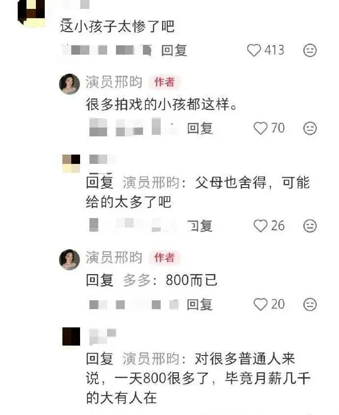 据了解,该场戏婴儿的片酬仅800元,部分家长因经济压力接受此类拍摄。许多网友表达了对婴儿演员处境的同情和对行业现状的不满,直指父母和剧组“将孩子当赚钱工具”,批评剧组缺乏基本人道关怀。