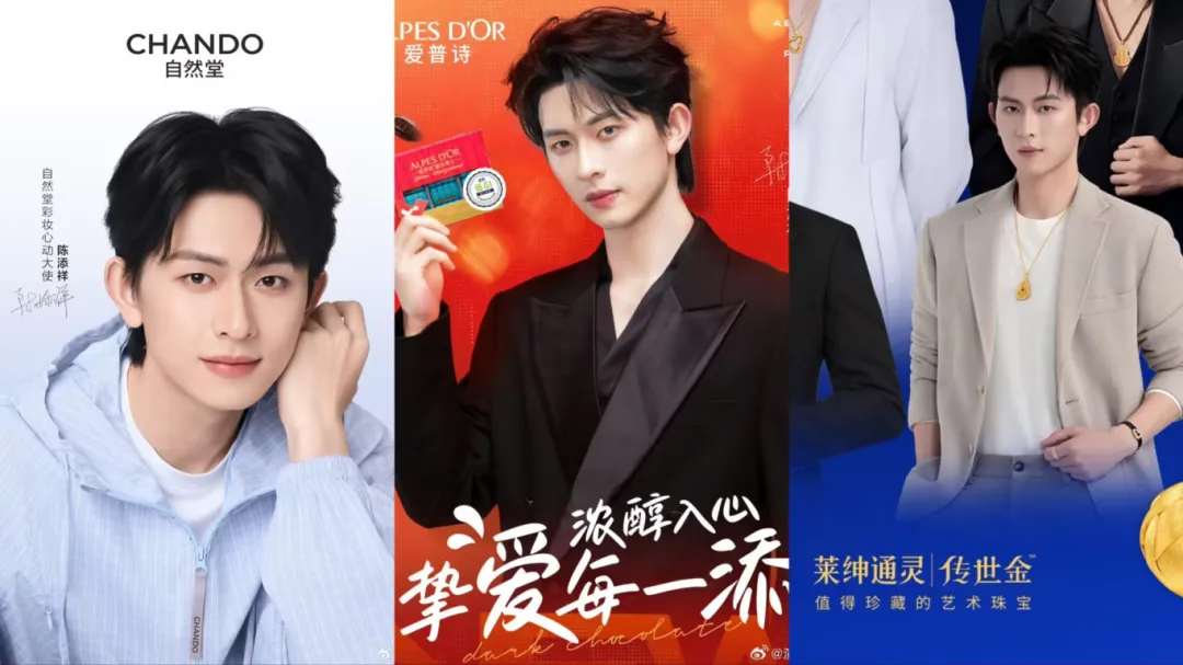而陈添祥的商务表现,更是在短剧演员中杀出重围。12月陈添祥接连官宣成为爱普诗巧克力中国区品牌挚友、自然堂彩妆心动大使、莱绅通灵品牌挚友。手握多个短剧演员稀缺的正式商务title,商务类型包括珠宝、彩妆、食品三种不同领域,商务矩阵可以说既多元又高端。