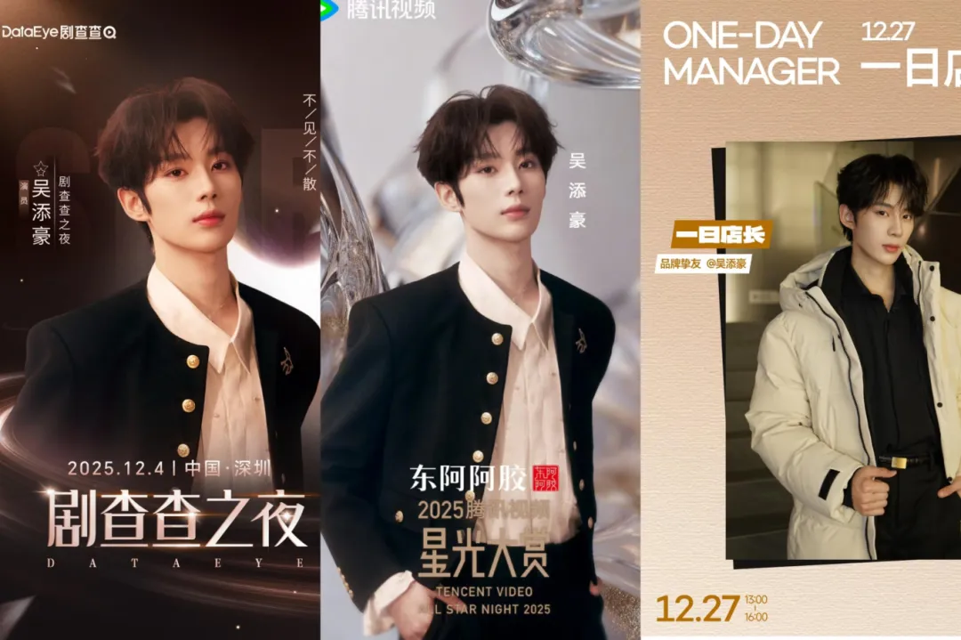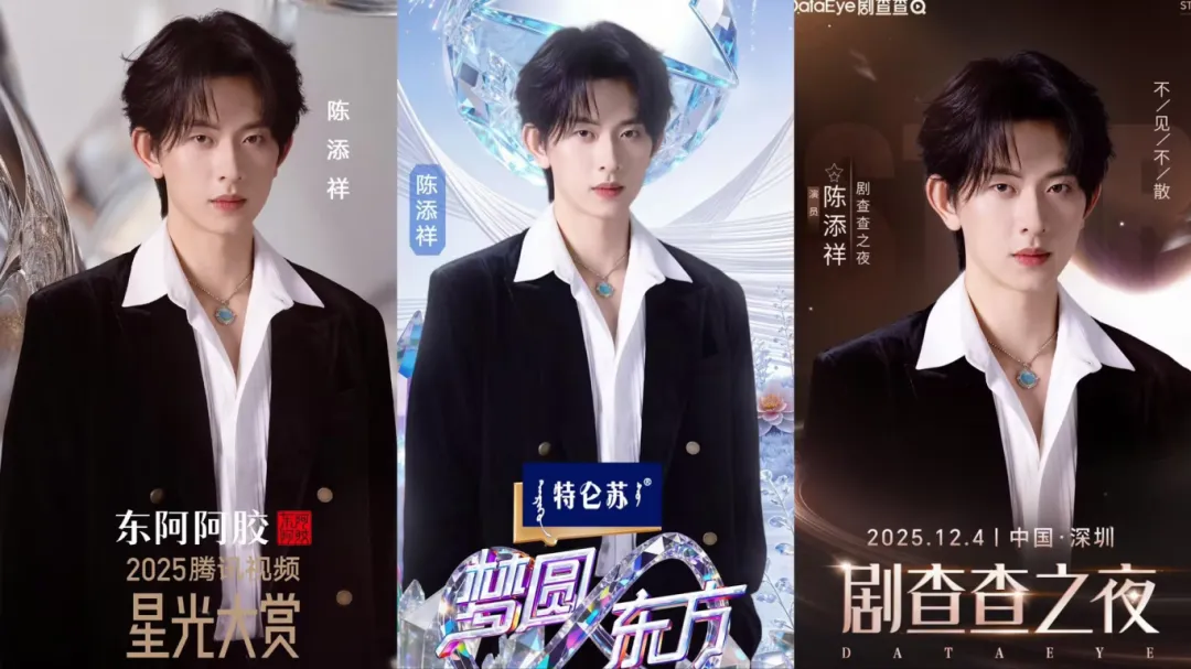 其实从2025下半年开始,陈添祥的商务数量就逐步增多,年末更是爆发式官宣。2026刚开年,他就再官宣椒巴客、听研等新商务,还受邀参加奢侈品品牌娇兰站台活动。12月接连出席星光大赏、剧查查之夜和东方卫视跨年活动,发展潜力和上升空间非常广阔。