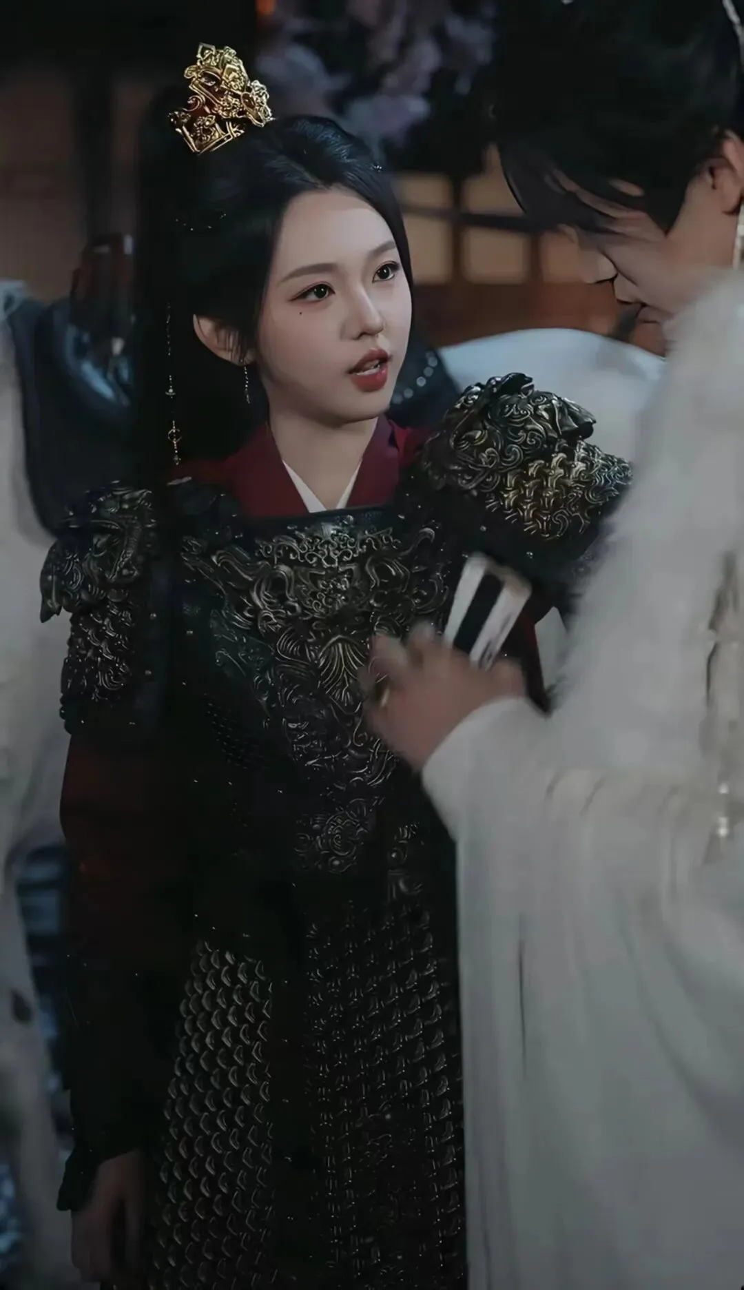 先来说说英气天花板李柯以,她在《夫人她专治不服3之将门捉婿》中饰演的谢栖月,堪称短剧铠甲造型的巅峰。170cm的高挑身形,搭配玄铁色铠甲,束发利落干练,周身散发着将门之女的飒爽气场。面对顽固不化的夫君,她不搞娇柔造作那一套,直接持械上门“教训”,又美又刚的模样让人过目难忘。