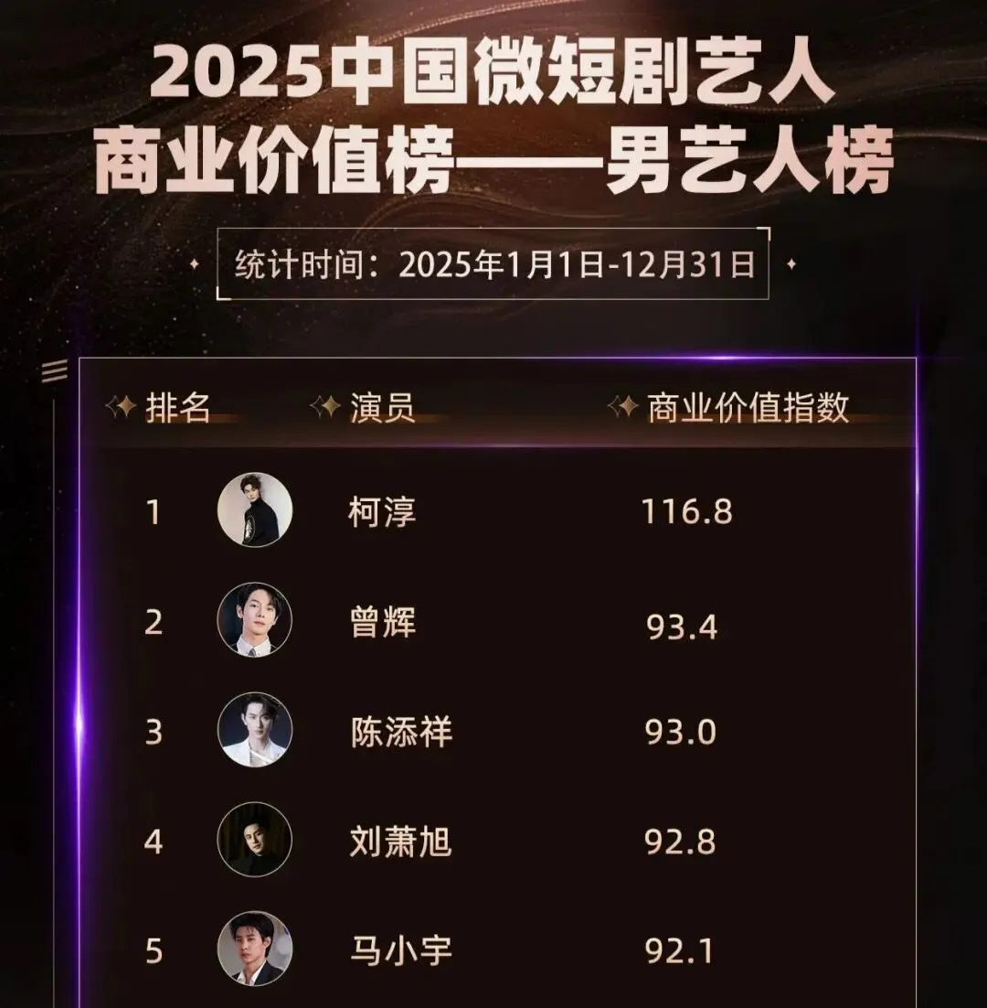 柯淳手握多个代言,陈添祥登主流杂志,短剧演员商务资源、商业价值排行全曝光