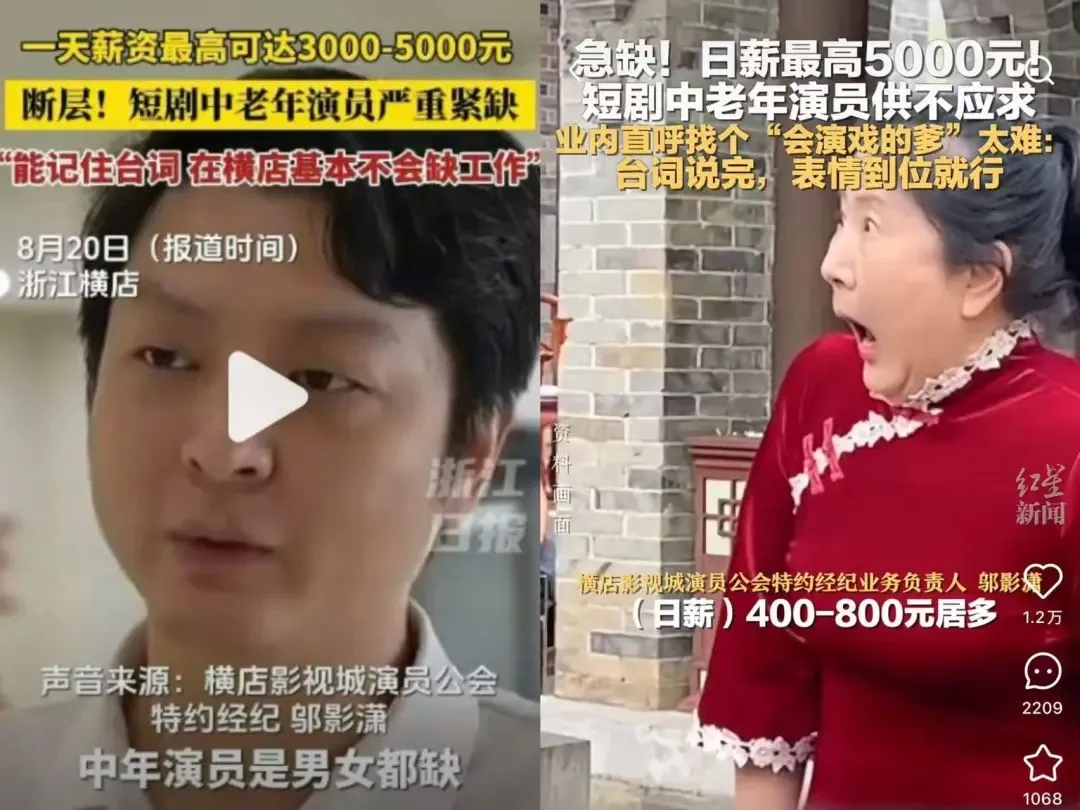 近日,横店一则招聘信息登上热搜。短剧圈竟然开出日薪五千的大价钱,招募60岁-70岁的“霸总爹”“女主妈”。还坐在办公室“996”的牛马,不禁想感叹一句:“怎么什么红利都让父母辈吃上了!”
