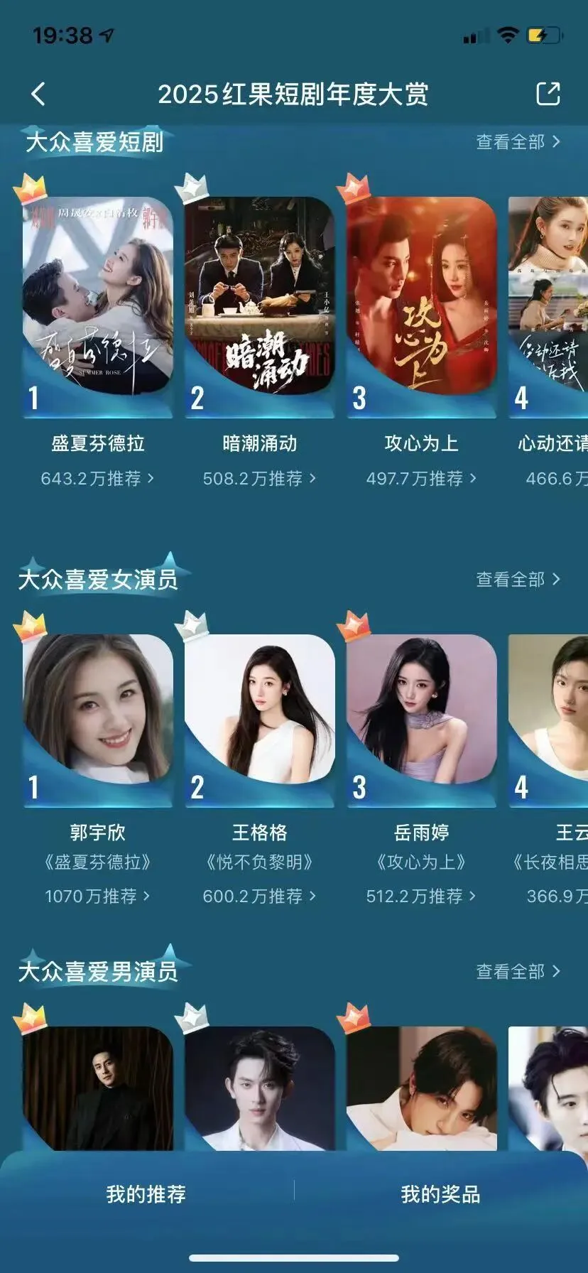 2025年红果短剧年度大赏 大众喜爱女演员第2名,600万票。
