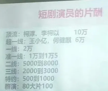 像柯淳、李柯以这些顶流短剧演员,日薪基本能到5万-8万,甚至10万。