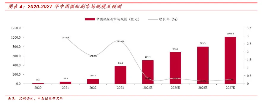 短剧投流方面,2024年短剧投流规模约为330亿,占短剧收入贡献的65%,预计 2025年投流规模接近400亿,2027年投流规模有望超过460亿元。2024年参与投流的微短剧总数(去重)超4.46万部,其中新剧总数超3.64万部,占比约82%。