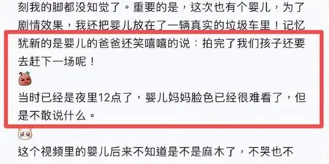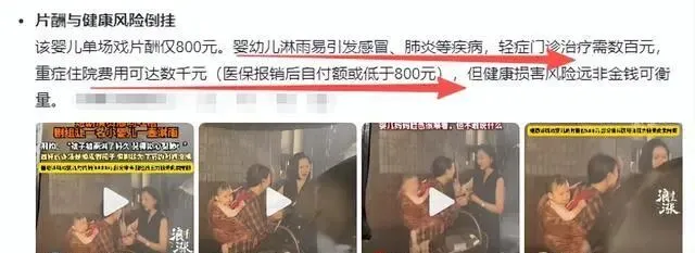 剧组说他们给了800块钱。800块,买一个婴儿半小时的折磨,买他可能感冒发烧的风险,买他未来健康未知的隐患。这账算得真精明。