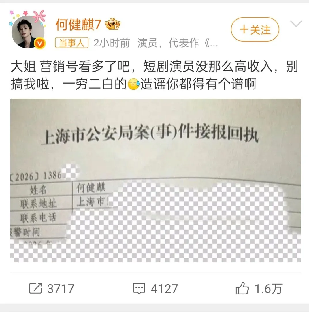 近日,一场由微博用户“何健麒的债”手持身份证发起的实名举报,将短剧演员何健麒推至舆论的风口浪尖。举报视频中,指控者以牺牲个人隐私为代价,直指何健麒吸毒、被警方调查、私生活混乱。而何健麒及其工作室在两小时内火速反击,发布声明、晒出报案回执,坚决否认并斥为诽谤。一时间,“实名举报者”与“法律维权者”各执一词,一场典型的“罗生门”在公众面前上演。然而,这起事件所牵动的,远不止个人名誉之争,更尖锐地触及了公众对艺人涉毒“零容忍”的神经,以及网络实名举报这一形式的效力与边界。